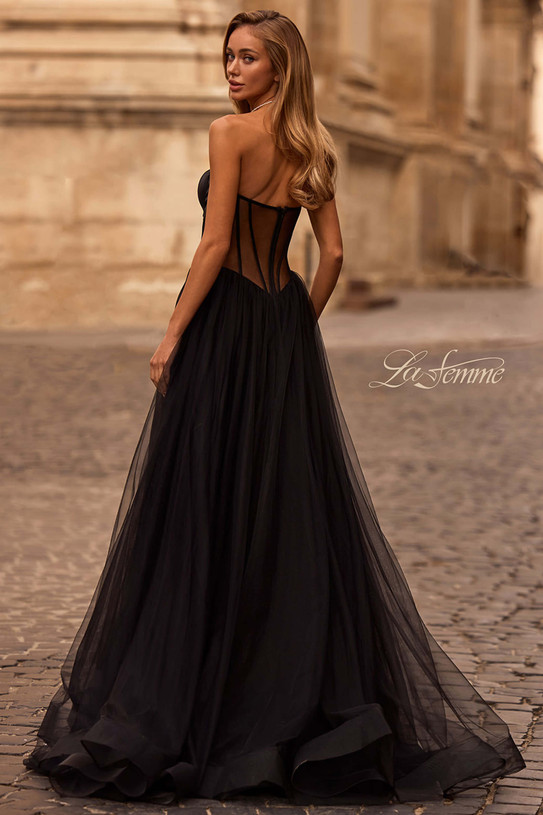 - Structured Corset Bodices: To add a touch of romantic drama, many black gowns feature a supportive and flattering corset bodice.