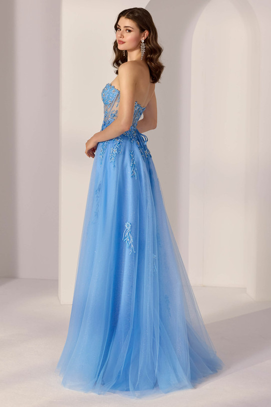 - Sparkling Embellishments: Blue pairs beautifully with silver sparkle. Look for gowns with intricate silver beading or shimmering sequin details.