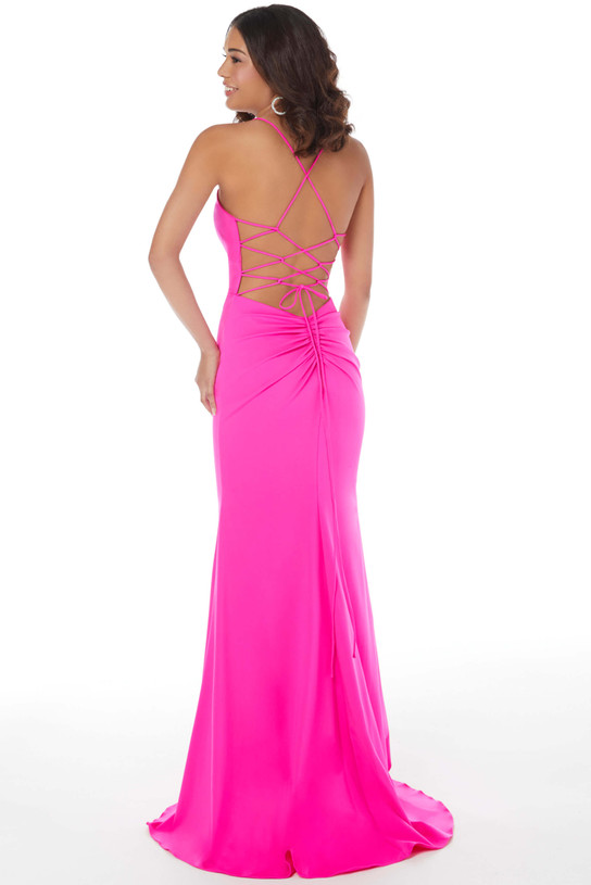 Show off your hourglass figure at your senior prom in this amazing prom dress. The glitter tulle dress features a sweetheart neckline with spaghetti straps, corset bodice, and slim fit flare skirt with a train. The lace up open back adds a sexy look to this dress.