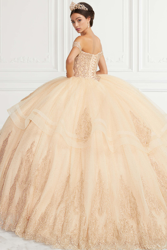 Remember your magical fifteenth birthday forever wearing this lovely quinceanera dress. The tulle dress offers a sweetheart neckline, gorgeous beaded bodice, and basque waist. A sparkle tulle ball gown skirt with high-floral hem completes this dress. Detachable long sleeves and lace up back with long train.